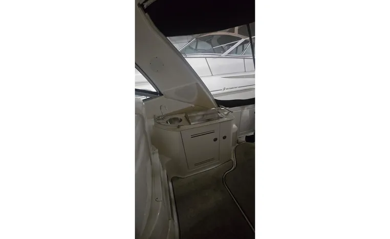 Freshwater/Great Lakes boat since new. This vessel features Twin 8.1-litre 370-hp MerCruiser Horizon Gas Engines with only 390 original hours. Notable features include but are not limited to the following: Air-Conditioning & Heat, Head (Vacuflush) w/Vanity/Sink/Shower, Hardwood flooring in cabin, Electronics Package (VHF Marine Radio, GPS/Chartplotter, MerCrusier SmartCraft, etc.), Kohler Generator, Cockpit Wet Bar w/Sink/Refrigerator, Windlass Anchor, Hardtop w/ Canvas Camper Top, Premium Sound System in cockpit, and MUCH more!