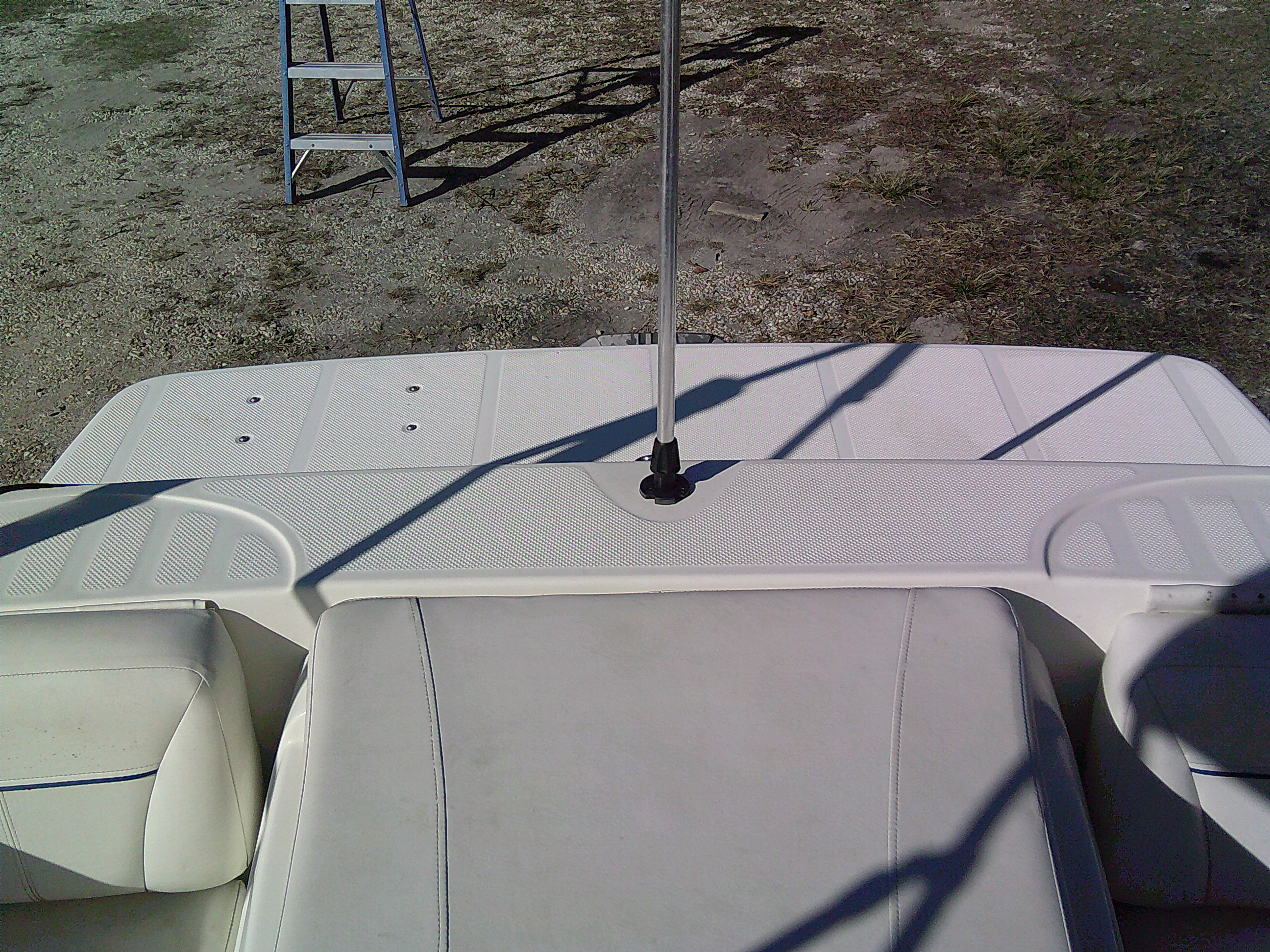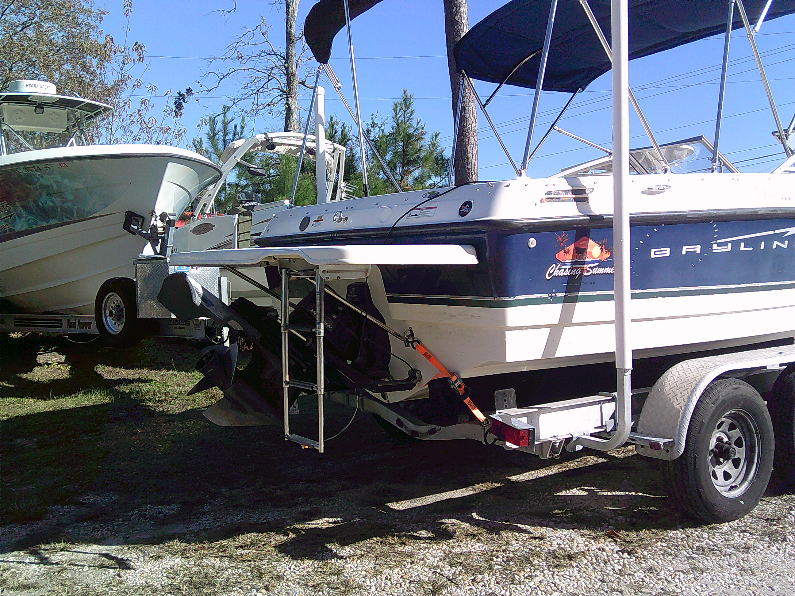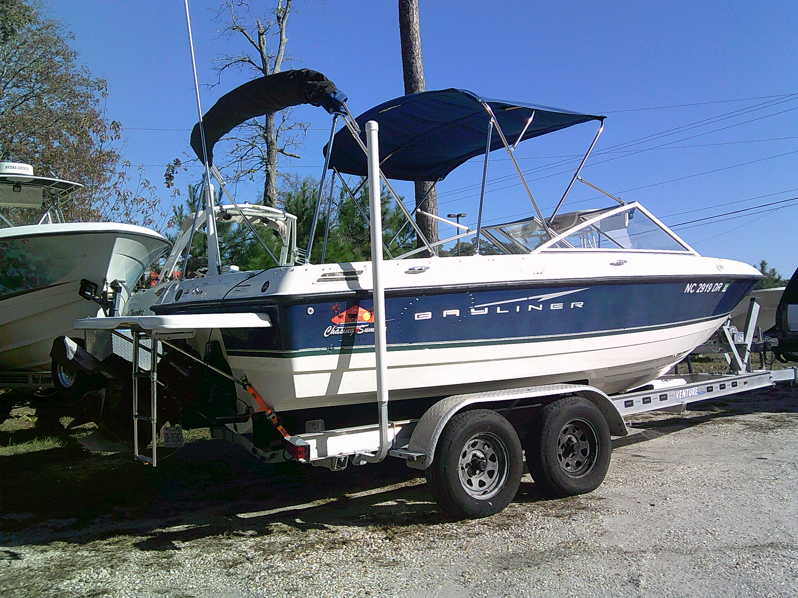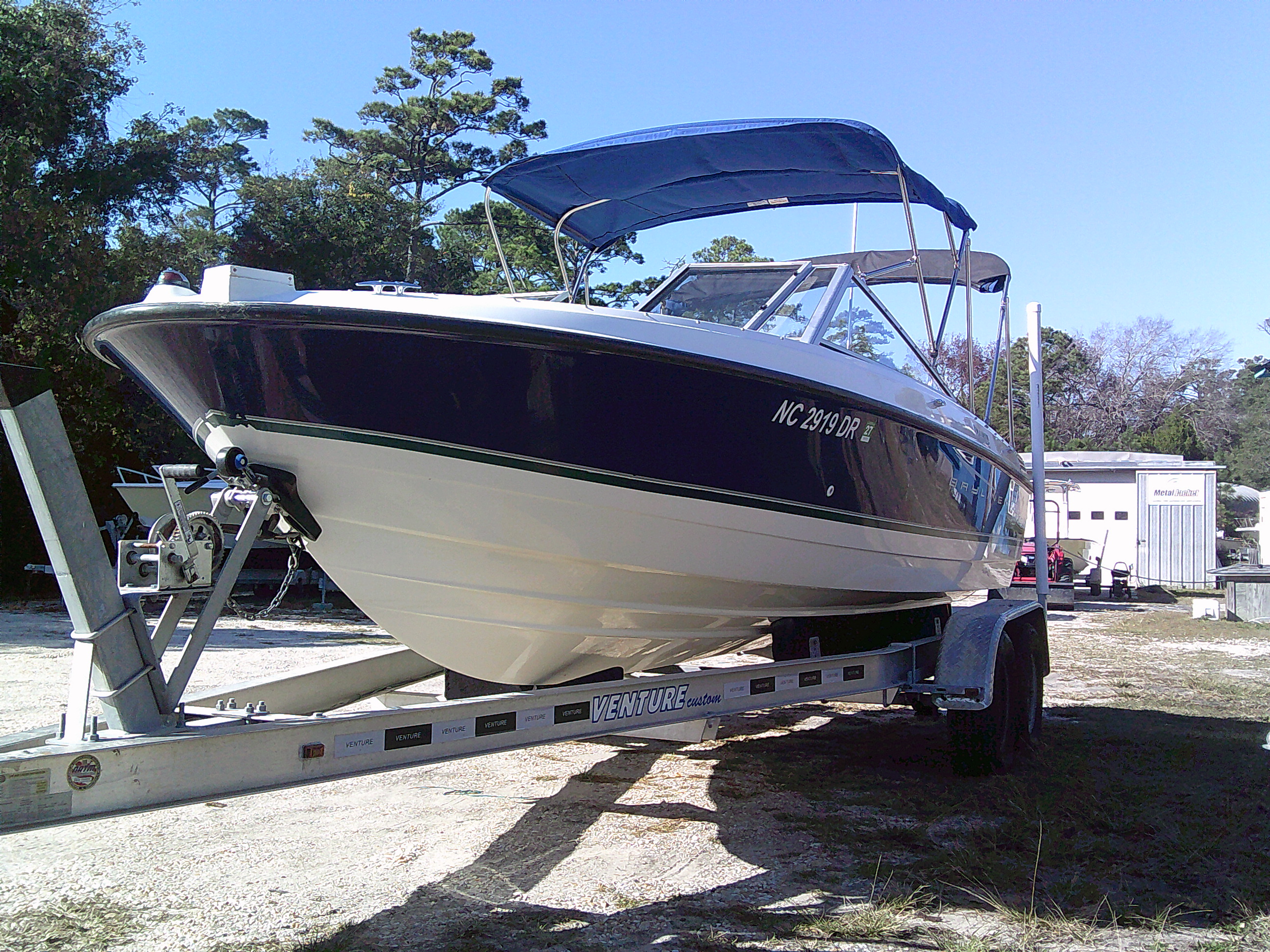 Vessel Info: Cushioned Forward Seating w/Back Rest, Storage and Cup Holders / Walk Through w/Folding Wind Screen / Helm Console w/ Gauges, Controls, Switch Panel, Hydraulic Steering / Cushioned Adjustable Helm Chair w/Folding Bolster / Passenger Console w/Storage and Passenger Cushioned Folding Seat / Large In Deck Storage Compartment / Under Gunner Storage / 2 Bimini Tops w/Forward Curtains / 2 Aft Cushioned Jump Seats w/Back Rest / Cushioned Engine Cover w/Cup Holders / Large Aft Swim Platform w/ Ski Bar and Swim Ladder