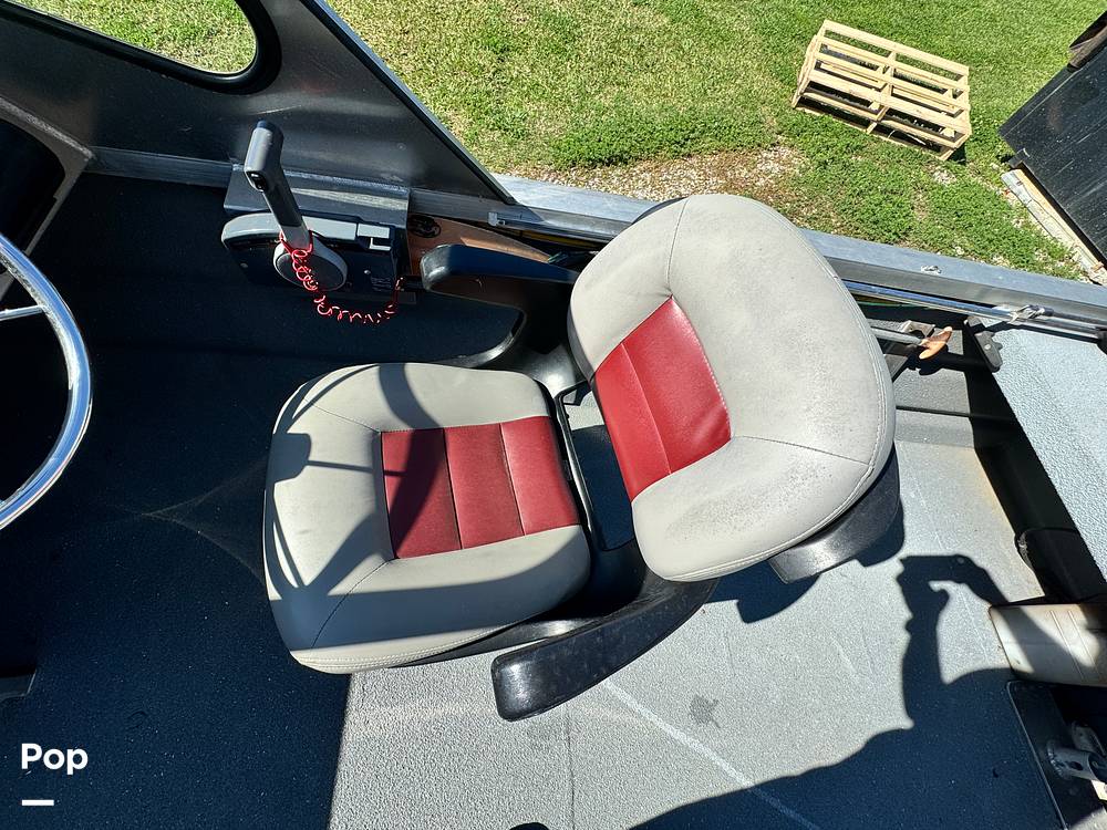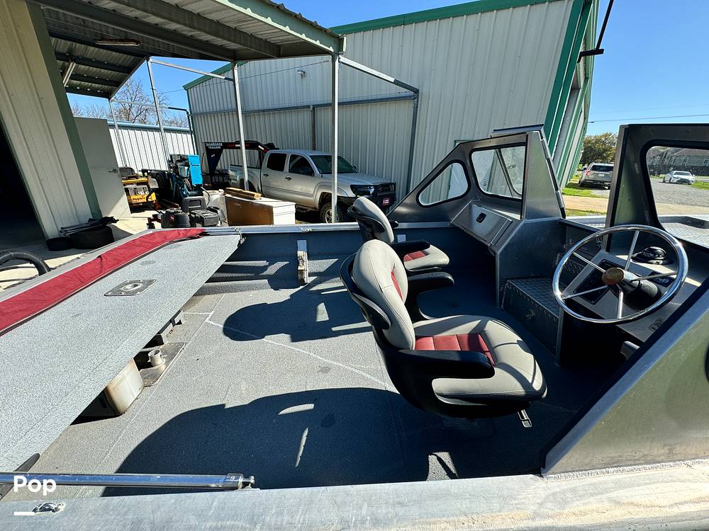 Constructed with 3/16" aluminum throughout, this boat is sturdy and built to last. Whether cruising through calm waters or braving rough seas, this boat is up for any challenge. Plus, with its indoor storage, this beauty has been well-preserved.