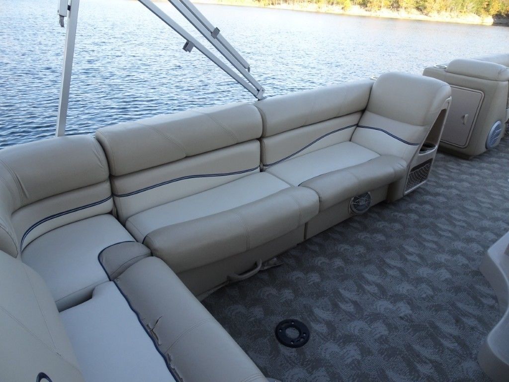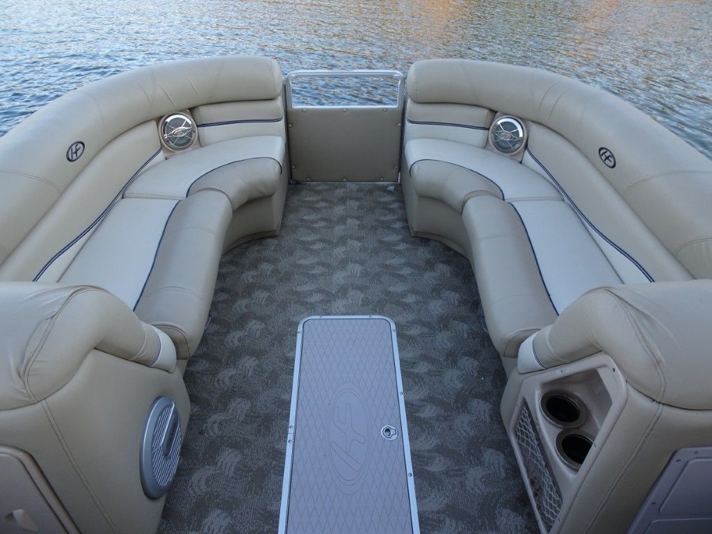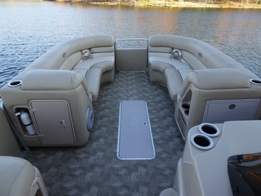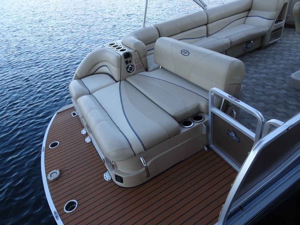 Not only does the stylish, expertly crafted Grand Mariner SEL 230 boast the space and amenities necessary for entertaining guests, it also provides the technology, appointments, handling and horsepower to satisfy the most ardent watersports enthusiast. Like its sister, the 230, this luxury pontoon boasts the Cruise floorplan, with comfortable bow seating, large L-shaped aft lounge and a sunpad. It also has the Grand Mariner Series’ signature open transom, as well as a lavish rear-facing lounge with convenient flip-top backrest. An available port bow group allows you to replace the bow lounges with two Lux or Ultra Lux bow seats and a flip-up table. The SEL 230 provides a ski tow pylon and heavy duty performance package standard, and if you’re even more serious about refining your watersports skills, you may add a ski locker and a rough water package. You also may upgrade your stereo system, add high-tech fishing electronics and choose state-of-the-art stern drive power. Making memories has never looked, or felt, quite so good.