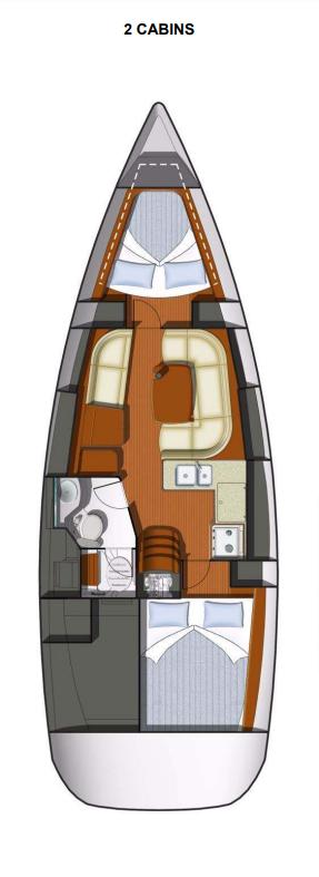 Spacious two-cabin layout with a bright and airy saloon