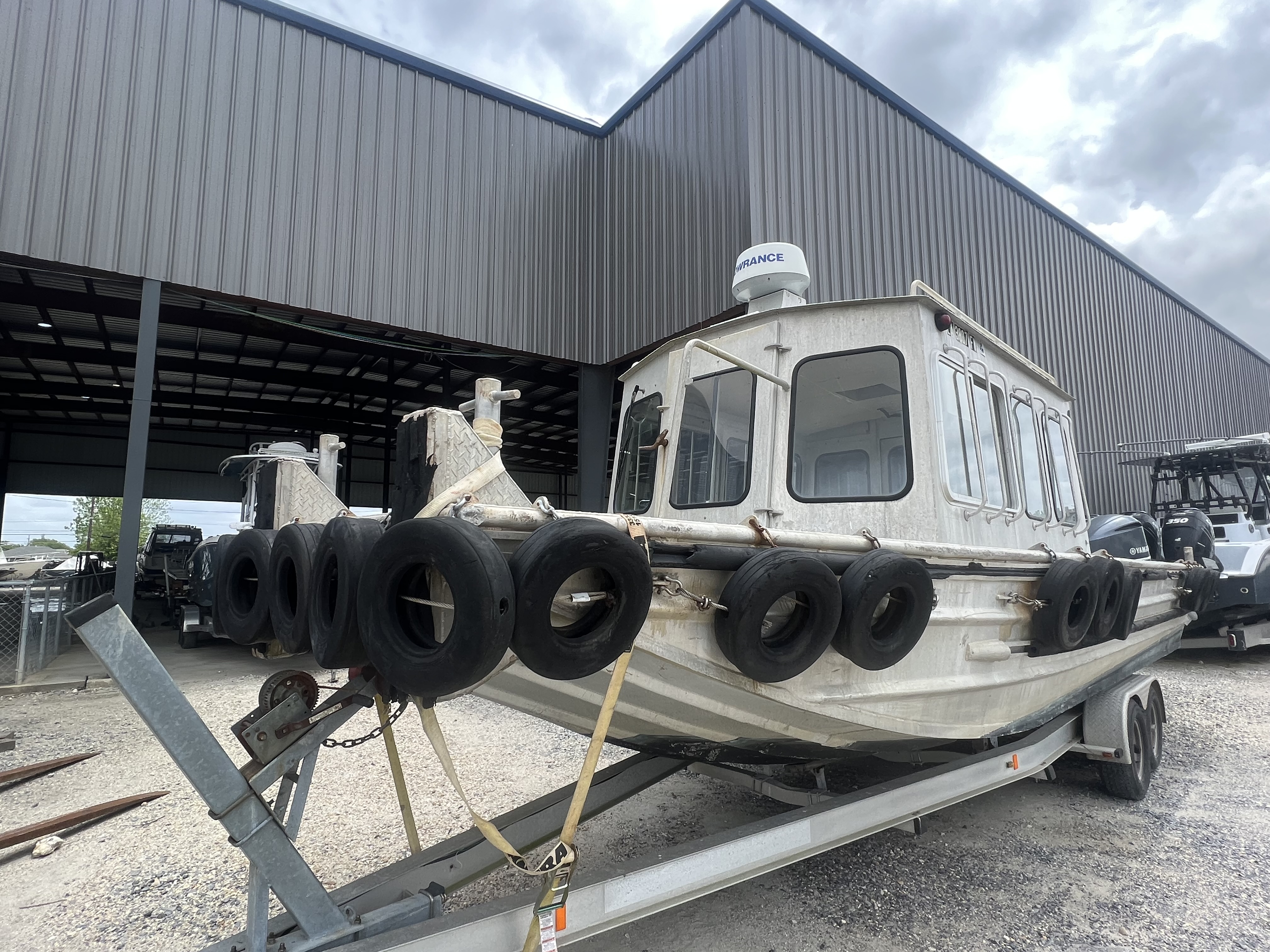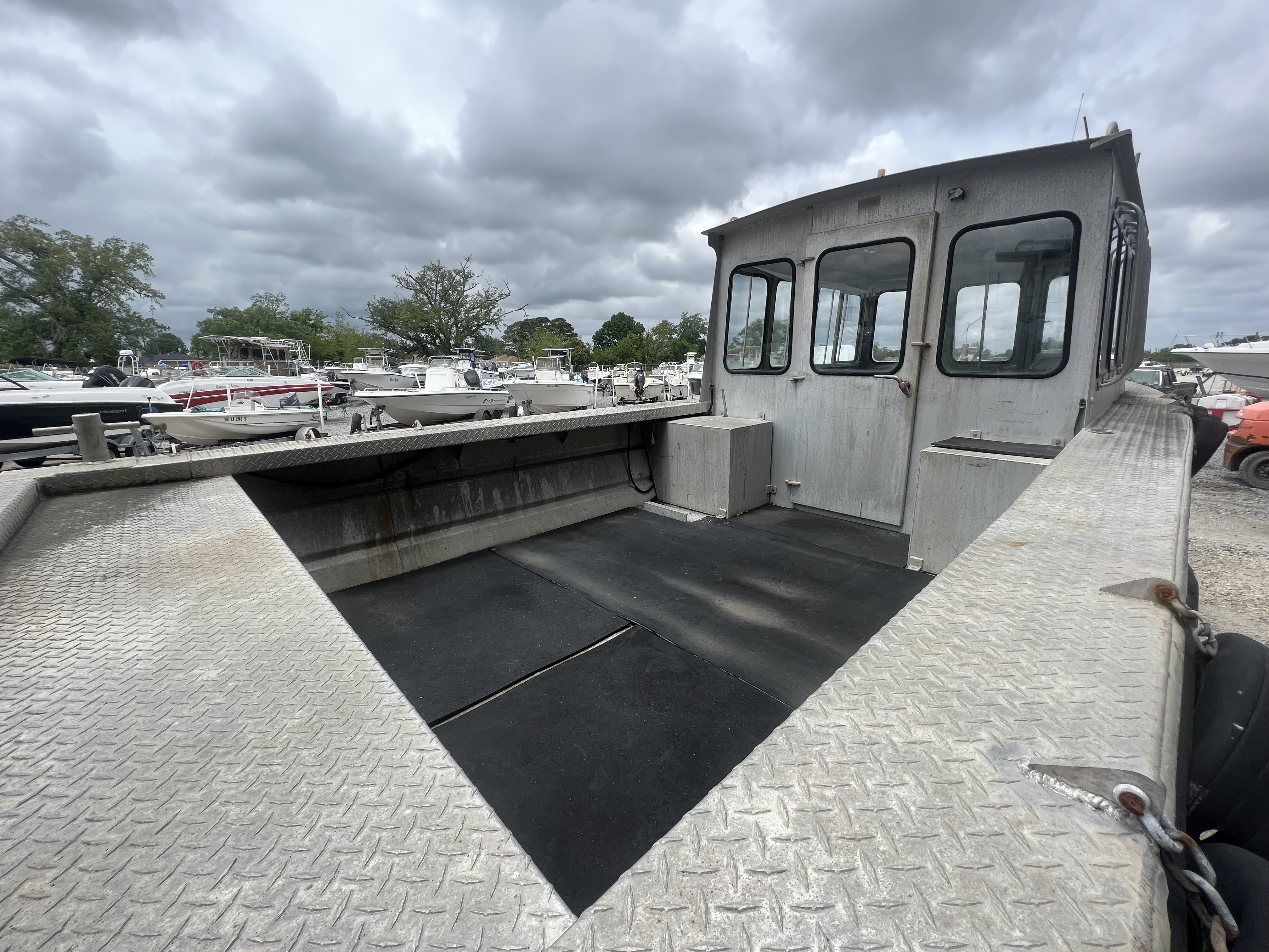 If you are in the market for a work horse, look no further! This boat offers plenty of space on the back deck for supplies and cargo. Also offers plenty of space for crew members in the cabin area. This boat is also equipped with push knees that can help get the job done.