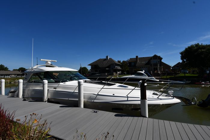Features Twin Cummins QSB 380 HO P 380-hp Diesel Engine's w/Zues Pod's (w/Skyhook / Joy-Stick Piloting) and 1034 original hours. Notable features include but are not limited to the following: Air-Conditioning & Heat (3-Units - Including Cockpit AC/Heat), Head (Vacuflush) w/Vanity/Sink/Stall-Shower, Central Vacuum, Onan 11.5kw Generator (885-hrs), Windlass Anchor w/Forward Pedal-Controls (Note Anchor Locker Freshwater Washdown), Raymarine E120 Color MFD w/Radar/GPS/Chartplotter - Mercury Precision-Pilot w/Sky-Hook / Joy-Stick Piloting, Sony Premium Sound System, Cockpit Wet Bar w/Sink/Refrigerator/Electric BBQ-Grill, Hardtop w/Electric Sun-Roof, Plasteak Cockpit / Swim-Platform Decking, and MUCH more!