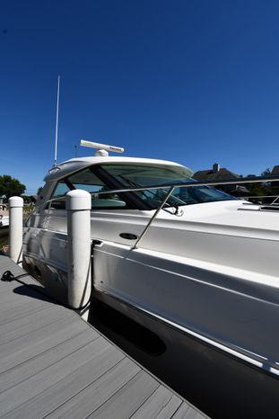 Features Twin Cummins QSB 380 HO P 380-hp Diesel Engine's w/Zues Pod's (w/Skyhook / Joy-Stick Piloting) and 1034 original hours. Notable features include but are not limited to the following: Air-Conditioning & Heat (3-Units - Including Cockpit AC/Heat), Head (Vacuflush) w/Vanity/Sink/Stall-Shower, Central Vacuum, Onan 11.5kw Generator (885-hrs), Windlass Anchor w/Forward Pedal-Controls (Note Anchor Locker Freshwater Washdown), Raymarine E120 Color MFD w/Radar/GPS/Chartplotter - Mercury Precision-Pilot w/Sky-Hook / Joy-Stick Piloting, Sony Premium Sound System, Cockpit Wet Bar w/Sink/Refrigerator/Electric BBQ-Grill, Hardtop w/Electric Sun-Roof, Plasteak Cockpit / Swim-Platform Decking, and MUCH more!