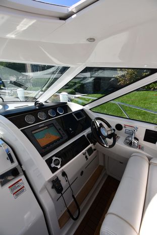 Features Twin Cummins QSB 380 HO P 380-hp Diesel Engine's w/Zues Pod's (w/Skyhook / Joy-Stick Piloting) and 1034 original hours. Notable features include but are not limited to the following: Air-Conditioning & Heat (3-Units - Including Cockpit AC/Heat), Head (Vacuflush) w/Vanity/Sink/Stall-Shower, Central Vacuum, Onan 11.5kw Generator (885-hrs), Windlass Anchor w/Forward Pedal-Controls (Note Anchor Locker Freshwater Washdown), Raymarine E120 Color MFD w/Radar/GPS/Chartplotter - Mercury Precision-Pilot w/Sky-Hook / Joy-Stick Piloting, Sony Premium Sound System, Cockpit Wet Bar w/Sink/Refrigerator/Electric BBQ-Grill, Hardtop w/Electric Sun-Roof, Plasteak Cockpit / Swim-Platform Decking, and MUCH more!