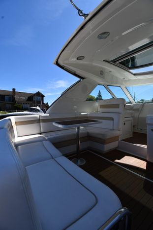 Features Twin Cummins QSB 380 HO P 380-hp Diesel Engine's w/Zues Pod's (w/Skyhook / Joy-Stick Piloting) and 1034 original hours. Notable features include but are not limited to the following: Air-Conditioning & Heat (3-Units - Including Cockpit AC/Heat), Head (Vacuflush) w/Vanity/Sink/Stall-Shower, Central Vacuum, Onan 11.5kw Generator (885-hrs), Windlass Anchor w/Forward Pedal-Controls (Note Anchor Locker Freshwater Washdown), Raymarine E120 Color MFD w/Radar/GPS/Chartplotter - Mercury Precision-Pilot w/Sky-Hook / Joy-Stick Piloting, Sony Premium Sound System, Cockpit Wet Bar w/Sink/Refrigerator/Electric BBQ-Grill, Hardtop w/Electric Sun-Roof, Plasteak Cockpit / Swim-Platform Decking, and MUCH more!