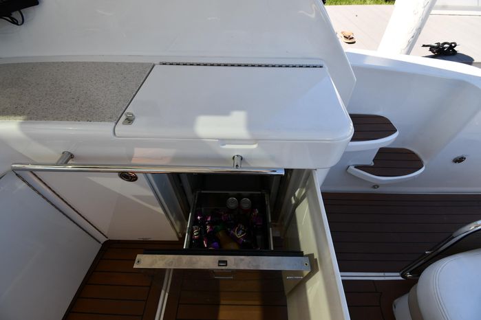 Features Twin Cummins QSB 380 HO P 380-hp Diesel Engine's w/Zues Pod's (w/Skyhook / Joy-Stick Piloting) and 1034 original hours. Notable features include but are not limited to the following: Air-Conditioning & Heat (3-Units - Including Cockpit AC/Heat), Head (Vacuflush) w/Vanity/Sink/Stall-Shower, Central Vacuum, Onan 11.5kw Generator (885-hrs), Windlass Anchor w/Forward Pedal-Controls (Note Anchor Locker Freshwater Washdown), Raymarine E120 Color MFD w/Radar/GPS/Chartplotter - Mercury Precision-Pilot w/Sky-Hook / Joy-Stick Piloting, Sony Premium Sound System, Cockpit Wet Bar w/Sink/Refrigerator/Electric BBQ-Grill, Hardtop w/Electric Sun-Roof, Plasteak Cockpit / Swim-Platform Decking, and MUCH more!