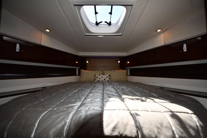 Features Twin Cummins QSB 380 HO P 380-hp Diesel Engine's w/Zues Pod's (w/Skyhook / Joy-Stick Piloting) and 1034 original hours. Notable features include but are not limited to the following: Air-Conditioning & Heat (3-Units - Including Cockpit AC/Heat), Head (Vacuflush) w/Vanity/Sink/Stall-Shower, Central Vacuum, Onan 11.5kw Generator (885-hrs), Windlass Anchor w/Forward Pedal-Controls (Note Anchor Locker Freshwater Washdown), Raymarine E120 Color MFD w/Radar/GPS/Chartplotter - Mercury Precision-Pilot w/Sky-Hook / Joy-Stick Piloting, Sony Premium Sound System, Cockpit Wet Bar w/Sink/Refrigerator/Electric BBQ-Grill, Hardtop w/Electric Sun-Roof, Plasteak Cockpit / Swim-Platform Decking, and MUCH more!
