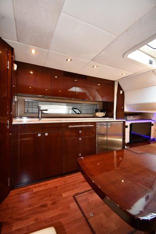 Features Twin Cummins QSB 380 HO P 380-hp Diesel Engine's w/Zues Pod's (w/Skyhook / Joy-Stick Piloting) and 1034 original hours. Notable features include but are not limited to the following: Air-Conditioning & Heat (3-Units - Including Cockpit AC/Heat), Head (Vacuflush) w/Vanity/Sink/Stall-Shower, Central Vacuum, Onan 11.5kw Generator (885-hrs), Windlass Anchor w/Forward Pedal-Controls (Note Anchor Locker Freshwater Washdown), Raymarine E120 Color MFD w/Radar/GPS/Chartplotter - Mercury Precision-Pilot w/Sky-Hook / Joy-Stick Piloting, Sony Premium Sound System, Cockpit Wet Bar w/Sink/Refrigerator/Electric BBQ-Grill, Hardtop w/Electric Sun-Roof, Plasteak Cockpit / Swim-Platform Decking, and MUCH more!