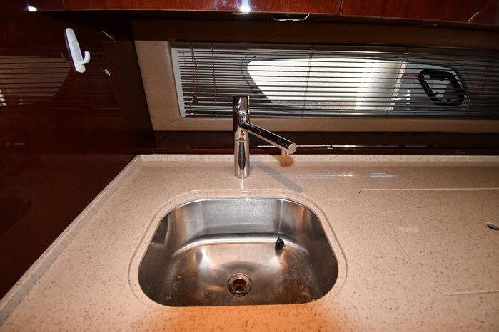 Features Twin Cummins QSB 380 HO P 380-hp Diesel Engine's w/Zues Pod's (w/Skyhook / Joy-Stick Piloting) and 1034 original hours. Notable features include but are not limited to the following: Air-Conditioning & Heat (3-Units - Including Cockpit AC/Heat), Head (Vacuflush) w/Vanity/Sink/Stall-Shower, Central Vacuum, Onan 11.5kw Generator (885-hrs), Windlass Anchor w/Forward Pedal-Controls (Note Anchor Locker Freshwater Washdown), Raymarine E120 Color MFD w/Radar/GPS/Chartplotter - Mercury Precision-Pilot w/Sky-Hook / Joy-Stick Piloting, Sony Premium Sound System, Cockpit Wet Bar w/Sink/Refrigerator/Electric BBQ-Grill, Hardtop w/Electric Sun-Roof, Plasteak Cockpit / Swim-Platform Decking, and MUCH more!