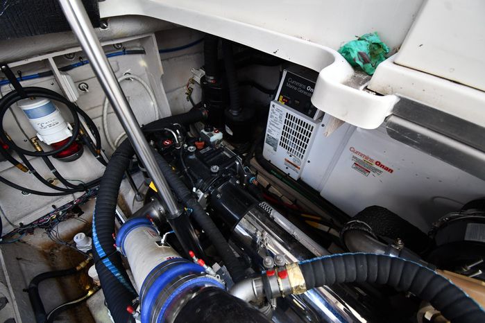 Features Twin Cummins QSB 380 HO P 380-hp Diesel Engine's w/Zues Pod's (w/Skyhook / Joy-Stick Piloting) and 1034 original hours. Notable features include but are not limited to the following: Air-Conditioning & Heat (3-Units - Including Cockpit AC/Heat), Head (Vacuflush) w/Vanity/Sink/Stall-Shower, Central Vacuum, Onan 11.5kw Generator (885-hrs), Windlass Anchor w/Forward Pedal-Controls (Note Anchor Locker Freshwater Washdown), Raymarine E120 Color MFD w/Radar/GPS/Chartplotter - Mercury Precision-Pilot w/Sky-Hook / Joy-Stick Piloting, Sony Premium Sound System, Cockpit Wet Bar w/Sink/Refrigerator/Electric BBQ-Grill, Hardtop w/Electric Sun-Roof, Plasteak Cockpit / Swim-Platform Decking, and MUCH more!