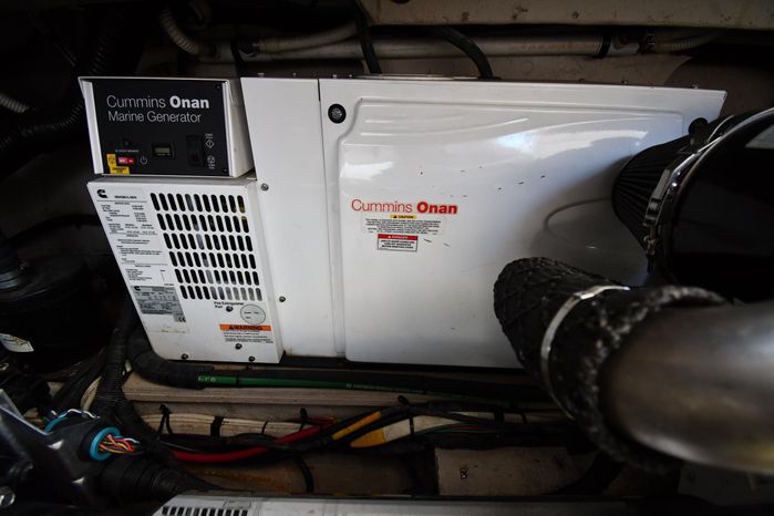Features Twin Cummins QSB 380 HO P 380-hp Diesel Engine's w/Zues Pod's (w/Skyhook / Joy-Stick Piloting) and 1034 original hours. Notable features include but are not limited to the following: Air-Conditioning & Heat (3-Units - Including Cockpit AC/Heat), Head (Vacuflush) w/Vanity/Sink/Stall-Shower, Central Vacuum, Onan 11.5kw Generator (885-hrs), Windlass Anchor w/Forward Pedal-Controls (Note Anchor Locker Freshwater Washdown), Raymarine E120 Color MFD w/Radar/GPS/Chartplotter - Mercury Precision-Pilot w/Sky-Hook / Joy-Stick Piloting, Sony Premium Sound System, Cockpit Wet Bar w/Sink/Refrigerator/Electric BBQ-Grill, Hardtop w/Electric Sun-Roof, Plasteak Cockpit / Swim-Platform Decking, and MUCH more!