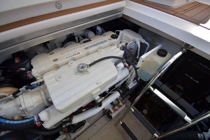 Features Twin Cummins QSB 380 HO P 380-hp Diesel Engine's w/Zues Pod's (w/Skyhook / Joy-Stick Piloting) and 1034 original hours. Notable features include but are not limited to the following: Air-Conditioning & Heat (3-Units - Including Cockpit AC/Heat), Head (Vacuflush) w/Vanity/Sink/Stall-Shower, Central Vacuum, Onan 11.5kw Generator (885-hrs), Windlass Anchor w/Forward Pedal-Controls (Note Anchor Locker Freshwater Washdown), Raymarine E120 Color MFD w/Radar/GPS/Chartplotter - Mercury Precision-Pilot w/Sky-Hook / Joy-Stick Piloting, Sony Premium Sound System, Cockpit Wet Bar w/Sink/Refrigerator/Electric BBQ-Grill, Hardtop w/Electric Sun-Roof, Plasteak Cockpit / Swim-Platform Decking, and MUCH more!