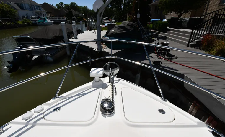 Features Twin Cummins QSB 380 HO P 380-hp Diesel Engine's w/Zues Pod's (w/Skyhook / Joy-Stick Piloting) and 1034 original hours. Notable features include but are not limited to the following: Air-Conditioning & Heat (3-Units - Including Cockpit AC/Heat), Head (Vacuflush) w/Vanity/Sink/Stall-Shower, Central Vacuum, Onan 11.5kw Generator (885-hrs), Windlass Anchor w/Forward Pedal-Controls (Note Anchor Locker Freshwater Washdown), Raymarine E120 Color MFD w/Radar/GPS/Chartplotter - Mercury Precision-Pilot w/Sky-Hook / Joy-Stick Piloting, Sony Premium Sound System, Cockpit Wet Bar w/Sink/Refrigerator/Electric BBQ-Grill, Hardtop w/Electric Sun-Roof, Plasteak Cockpit / Swim-Platform Decking, and MUCH more!