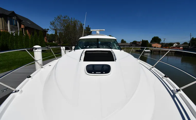 Features Twin Cummins QSB 380 HO P 380-hp Diesel Engine's w/Zues Pod's (w/Skyhook / Joy-Stick Piloting) and 1034 original hours. Notable features include but are not limited to the following: Air-Conditioning & Heat (3-Units - Including Cockpit AC/Heat), Head (Vacuflush) w/Vanity/Sink/Stall-Shower, Central Vacuum, Onan 11.5kw Generator (885-hrs), Windlass Anchor w/Forward Pedal-Controls (Note Anchor Locker Freshwater Washdown), Raymarine E120 Color MFD w/Radar/GPS/Chartplotter - Mercury Precision-Pilot w/Sky-Hook / Joy-Stick Piloting, Sony Premium Sound System, Cockpit Wet Bar w/Sink/Refrigerator/Electric BBQ-Grill, Hardtop w/Electric Sun-Roof, Plasteak Cockpit / Swim-Platform Decking, and MUCH more!