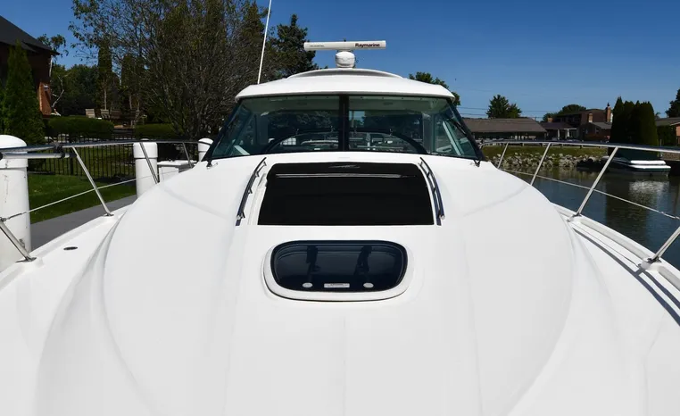 Features Twin Cummins QSB 380 HO P 380-hp Diesel Engine's w/Zues Pod's (w/Skyhook / Joy-Stick Piloting) and 1034 original hours. Notable features include but are not limited to the following: Air-Conditioning & Heat (3-Units - Including Cockpit AC/Heat), Head (Vacuflush) w/Vanity/Sink/Stall-Shower, Central Vacuum, Onan 11.5kw Generator (885-hrs), Windlass Anchor w/Forward Pedal-Controls (Note Anchor Locker Freshwater Washdown), Raymarine E120 Color MFD w/Radar/GPS/Chartplotter - Mercury Precision-Pilot w/Sky-Hook / Joy-Stick Piloting, Sony Premium Sound System, Cockpit Wet Bar w/Sink/Refrigerator/Electric BBQ-Grill, Hardtop w/Electric Sun-Roof, Plasteak Cockpit / Swim-Platform Decking, and MUCH more!