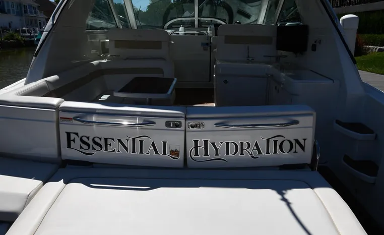 Features Twin Cummins QSB 380 HO P 380-hp Diesel Engine's w/Zues Pod's (w/Skyhook / Joy-Stick Piloting) and 1034 original hours. Notable features include but are not limited to the following: Air-Conditioning & Heat (3-Units - Including Cockpit AC/Heat), Head (Vacuflush) w/Vanity/Sink/Stall-Shower, Central Vacuum, Onan 11.5kw Generator (885-hrs), Windlass Anchor w/Forward Pedal-Controls (Note Anchor Locker Freshwater Washdown), Raymarine E120 Color MFD w/Radar/GPS/Chartplotter - Mercury Precision-Pilot w/Sky-Hook / Joy-Stick Piloting, Sony Premium Sound System, Cockpit Wet Bar w/Sink/Refrigerator/Electric BBQ-Grill, Hardtop w/Electric Sun-Roof, Plasteak Cockpit / Swim-Platform Decking, and MUCH more!