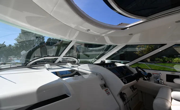 Features Twin Cummins QSB 380 HO P 380-hp Diesel Engine's w/Zues Pod's (w/Skyhook / Joy-Stick Piloting) and 1034 original hours. Notable features include but are not limited to the following: Air-Conditioning & Heat (3-Units - Including Cockpit AC/Heat), Head (Vacuflush) w/Vanity/Sink/Stall-Shower, Central Vacuum, Onan 11.5kw Generator (885-hrs), Windlass Anchor w/Forward Pedal-Controls (Note Anchor Locker Freshwater Washdown), Raymarine E120 Color MFD w/Radar/GPS/Chartplotter - Mercury Precision-Pilot w/Sky-Hook / Joy-Stick Piloting, Sony Premium Sound System, Cockpit Wet Bar w/Sink/Refrigerator/Electric BBQ-Grill, Hardtop w/Electric Sun-Roof, Plasteak Cockpit / Swim-Platform Decking, and MUCH more!