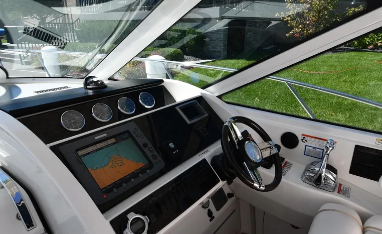 Features Twin Cummins QSB 380 HO P 380-hp Diesel Engine's w/Zues Pod's (w/Skyhook / Joy-Stick Piloting) and 1034 original hours. Notable features include but are not limited to the following: Air-Conditioning & Heat (3-Units - Including Cockpit AC/Heat), Head (Vacuflush) w/Vanity/Sink/Stall-Shower, Central Vacuum, Onan 11.5kw Generator (885-hrs), Windlass Anchor w/Forward Pedal-Controls (Note Anchor Locker Freshwater Washdown), Raymarine E120 Color MFD w/Radar/GPS/Chartplotter - Mercury Precision-Pilot w/Sky-Hook / Joy-Stick Piloting, Sony Premium Sound System, Cockpit Wet Bar w/Sink/Refrigerator/Electric BBQ-Grill, Hardtop w/Electric Sun-Roof, Plasteak Cockpit / Swim-Platform Decking, and MUCH more!