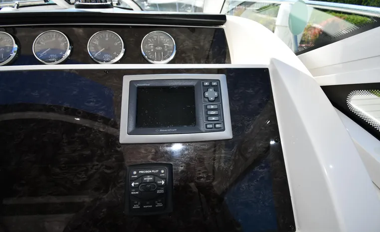 Features Twin Cummins QSB 380 HO P 380-hp Diesel Engine's w/Zues Pod's (w/Skyhook / Joy-Stick Piloting) and 1034 original hours. Notable features include but are not limited to the following: Air-Conditioning & Heat (3-Units - Including Cockpit AC/Heat), Head (Vacuflush) w/Vanity/Sink/Stall-Shower, Central Vacuum, Onan 11.5kw Generator (885-hrs), Windlass Anchor w/Forward Pedal-Controls (Note Anchor Locker Freshwater Washdown), Raymarine E120 Color MFD w/Radar/GPS/Chartplotter - Mercury Precision-Pilot w/Sky-Hook / Joy-Stick Piloting, Sony Premium Sound System, Cockpit Wet Bar w/Sink/Refrigerator/Electric BBQ-Grill, Hardtop w/Electric Sun-Roof, Plasteak Cockpit / Swim-Platform Decking, and MUCH more!