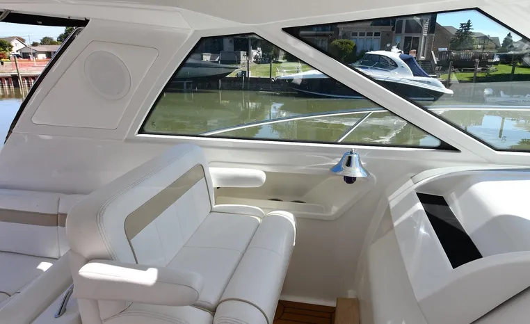 Features Twin Cummins QSB 380 HO P 380-hp Diesel Engine's w/Zues Pod's (w/Skyhook / Joy-Stick Piloting) and 1034 original hours. Notable features include but are not limited to the following: Air-Conditioning & Heat (3-Units - Including Cockpit AC/Heat), Head (Vacuflush) w/Vanity/Sink/Stall-Shower, Central Vacuum, Onan 11.5kw Generator (885-hrs), Windlass Anchor w/Forward Pedal-Controls (Note Anchor Locker Freshwater Washdown), Raymarine E120 Color MFD w/Radar/GPS/Chartplotter - Mercury Precision-Pilot w/Sky-Hook / Joy-Stick Piloting, Sony Premium Sound System, Cockpit Wet Bar w/Sink/Refrigerator/Electric BBQ-Grill, Hardtop w/Electric Sun-Roof, Plasteak Cockpit / Swim-Platform Decking, and MUCH more!