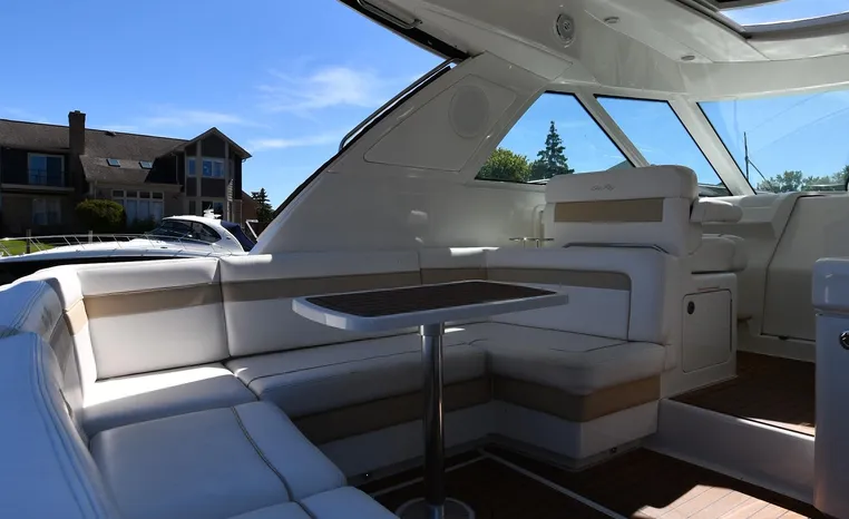 Features Twin Cummins QSB 380 HO P 380-hp Diesel Engine's w/Zues Pod's (w/Skyhook / Joy-Stick Piloting) and 1034 original hours. Notable features include but are not limited to the following: Air-Conditioning & Heat (3-Units - Including Cockpit AC/Heat), Head (Vacuflush) w/Vanity/Sink/Stall-Shower, Central Vacuum, Onan 11.5kw Generator (885-hrs), Windlass Anchor w/Forward Pedal-Controls (Note Anchor Locker Freshwater Washdown), Raymarine E120 Color MFD w/Radar/GPS/Chartplotter - Mercury Precision-Pilot w/Sky-Hook / Joy-Stick Piloting, Sony Premium Sound System, Cockpit Wet Bar w/Sink/Refrigerator/Electric BBQ-Grill, Hardtop w/Electric Sun-Roof, Plasteak Cockpit / Swim-Platform Decking, and MUCH more!