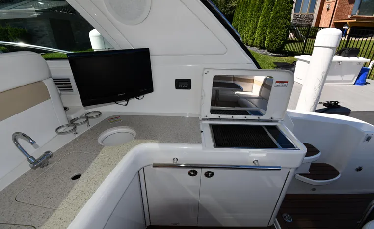 Features Twin Cummins QSB 380 HO P 380-hp Diesel Engine's w/Zues Pod's (w/Skyhook / Joy-Stick Piloting) and 1034 original hours. Notable features include but are not limited to the following: Air-Conditioning & Heat (3-Units - Including Cockpit AC/Heat), Head (Vacuflush) w/Vanity/Sink/Stall-Shower, Central Vacuum, Onan 11.5kw Generator (885-hrs), Windlass Anchor w/Forward Pedal-Controls (Note Anchor Locker Freshwater Washdown), Raymarine E120 Color MFD w/Radar/GPS/Chartplotter - Mercury Precision-Pilot w/Sky-Hook / Joy-Stick Piloting, Sony Premium Sound System, Cockpit Wet Bar w/Sink/Refrigerator/Electric BBQ-Grill, Hardtop w/Electric Sun-Roof, Plasteak Cockpit / Swim-Platform Decking, and MUCH more!