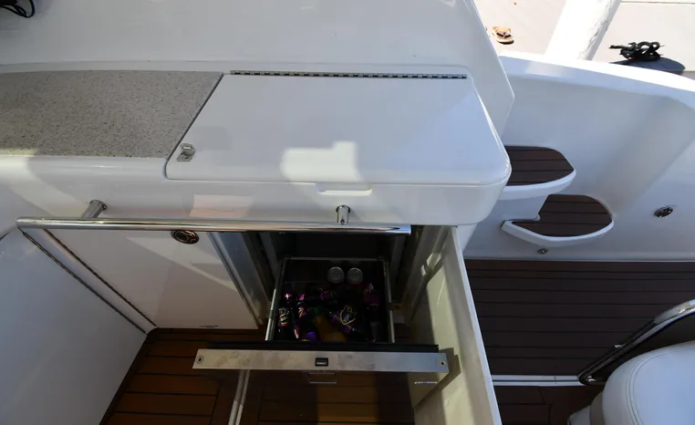 Features Twin Cummins QSB 380 HO P 380-hp Diesel Engine's w/Zues Pod's (w/Skyhook / Joy-Stick Piloting) and 1034 original hours. Notable features include but are not limited to the following: Air-Conditioning & Heat (3-Units - Including Cockpit AC/Heat), Head (Vacuflush) w/Vanity/Sink/Stall-Shower, Central Vacuum, Onan 11.5kw Generator (885-hrs), Windlass Anchor w/Forward Pedal-Controls (Note Anchor Locker Freshwater Washdown), Raymarine E120 Color MFD w/Radar/GPS/Chartplotter - Mercury Precision-Pilot w/Sky-Hook / Joy-Stick Piloting, Sony Premium Sound System, Cockpit Wet Bar w/Sink/Refrigerator/Electric BBQ-Grill, Hardtop w/Electric Sun-Roof, Plasteak Cockpit / Swim-Platform Decking, and MUCH more!