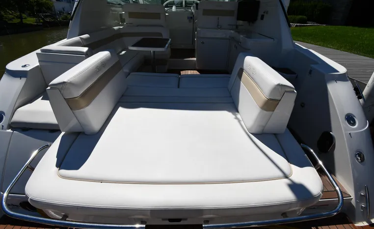 Features Twin Cummins QSB 380 HO P 380-hp Diesel Engine's w/Zues Pod's (w/Skyhook / Joy-Stick Piloting) and 1034 original hours. Notable features include but are not limited to the following: Air-Conditioning & Heat (3-Units - Including Cockpit AC/Heat), Head (Vacuflush) w/Vanity/Sink/Stall-Shower, Central Vacuum, Onan 11.5kw Generator (885-hrs), Windlass Anchor w/Forward Pedal-Controls (Note Anchor Locker Freshwater Washdown), Raymarine E120 Color MFD w/Radar/GPS/Chartplotter - Mercury Precision-Pilot w/Sky-Hook / Joy-Stick Piloting, Sony Premium Sound System, Cockpit Wet Bar w/Sink/Refrigerator/Electric BBQ-Grill, Hardtop w/Electric Sun-Roof, Plasteak Cockpit / Swim-Platform Decking, and MUCH more!
