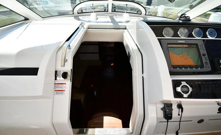 Features Twin Cummins QSB 380 HO P 380-hp Diesel Engine's w/Zues Pod's (w/Skyhook / Joy-Stick Piloting) and 1034 original hours. Notable features include but are not limited to the following: Air-Conditioning & Heat (3-Units - Including Cockpit AC/Heat), Head (Vacuflush) w/Vanity/Sink/Stall-Shower, Central Vacuum, Onan 11.5kw Generator (885-hrs), Windlass Anchor w/Forward Pedal-Controls (Note Anchor Locker Freshwater Washdown), Raymarine E120 Color MFD w/Radar/GPS/Chartplotter - Mercury Precision-Pilot w/Sky-Hook / Joy-Stick Piloting, Sony Premium Sound System, Cockpit Wet Bar w/Sink/Refrigerator/Electric BBQ-Grill, Hardtop w/Electric Sun-Roof, Plasteak Cockpit / Swim-Platform Decking, and MUCH more!