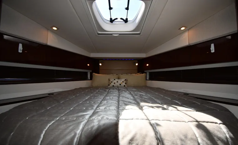 Features Twin Cummins QSB 380 HO P 380-hp Diesel Engine's w/Zues Pod's (w/Skyhook / Joy-Stick Piloting) and 1034 original hours. Notable features include but are not limited to the following: Air-Conditioning & Heat (3-Units - Including Cockpit AC/Heat), Head (Vacuflush) w/Vanity/Sink/Stall-Shower, Central Vacuum, Onan 11.5kw Generator (885-hrs), Windlass Anchor w/Forward Pedal-Controls (Note Anchor Locker Freshwater Washdown), Raymarine E120 Color MFD w/Radar/GPS/Chartplotter - Mercury Precision-Pilot w/Sky-Hook / Joy-Stick Piloting, Sony Premium Sound System, Cockpit Wet Bar w/Sink/Refrigerator/Electric BBQ-Grill, Hardtop w/Electric Sun-Roof, Plasteak Cockpit / Swim-Platform Decking, and MUCH more!