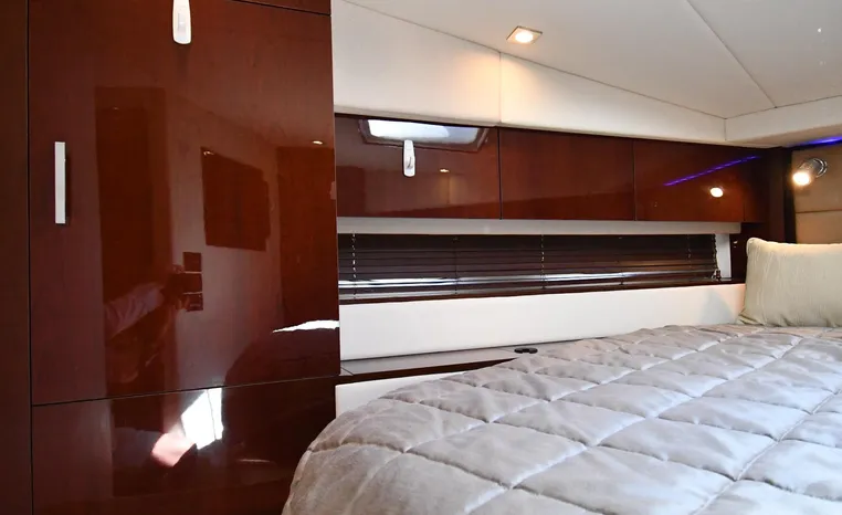 Features Twin Cummins QSB 380 HO P 380-hp Diesel Engine's w/Zues Pod's (w/Skyhook / Joy-Stick Piloting) and 1034 original hours. Notable features include but are not limited to the following: Air-Conditioning & Heat (3-Units - Including Cockpit AC/Heat), Head (Vacuflush) w/Vanity/Sink/Stall-Shower, Central Vacuum, Onan 11.5kw Generator (885-hrs), Windlass Anchor w/Forward Pedal-Controls (Note Anchor Locker Freshwater Washdown), Raymarine E120 Color MFD w/Radar/GPS/Chartplotter - Mercury Precision-Pilot w/Sky-Hook / Joy-Stick Piloting, Sony Premium Sound System, Cockpit Wet Bar w/Sink/Refrigerator/Electric BBQ-Grill, Hardtop w/Electric Sun-Roof, Plasteak Cockpit / Swim-Platform Decking, and MUCH more!