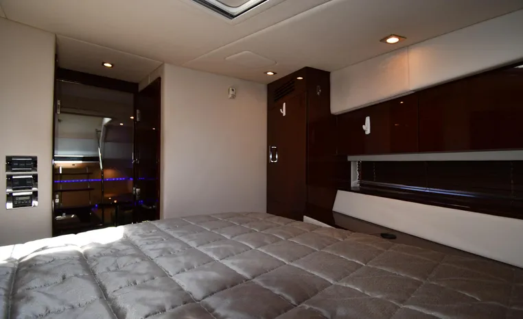 Features Twin Cummins QSB 380 HO P 380-hp Diesel Engine's w/Zues Pod's (w/Skyhook / Joy-Stick Piloting) and 1034 original hours. Notable features include but are not limited to the following: Air-Conditioning & Heat (3-Units - Including Cockpit AC/Heat), Head (Vacuflush) w/Vanity/Sink/Stall-Shower, Central Vacuum, Onan 11.5kw Generator (885-hrs), Windlass Anchor w/Forward Pedal-Controls (Note Anchor Locker Freshwater Washdown), Raymarine E120 Color MFD w/Radar/GPS/Chartplotter - Mercury Precision-Pilot w/Sky-Hook / Joy-Stick Piloting, Sony Premium Sound System, Cockpit Wet Bar w/Sink/Refrigerator/Electric BBQ-Grill, Hardtop w/Electric Sun-Roof, Plasteak Cockpit / Swim-Platform Decking, and MUCH more!
