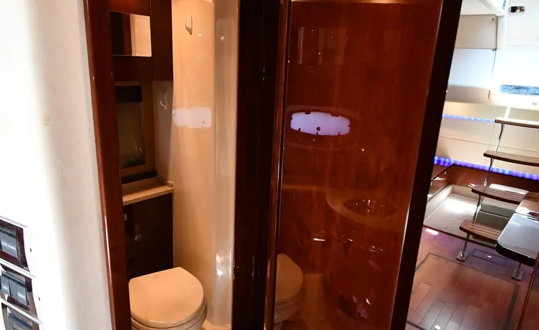 Features Twin Cummins QSB 380 HO P 380-hp Diesel Engine's w/Zues Pod's (w/Skyhook / Joy-Stick Piloting) and 1034 original hours. Notable features include but are not limited to the following: Air-Conditioning & Heat (3-Units - Including Cockpit AC/Heat), Head (Vacuflush) w/Vanity/Sink/Stall-Shower, Central Vacuum, Onan 11.5kw Generator (885-hrs), Windlass Anchor w/Forward Pedal-Controls (Note Anchor Locker Freshwater Washdown), Raymarine E120 Color MFD w/Radar/GPS/Chartplotter - Mercury Precision-Pilot w/Sky-Hook / Joy-Stick Piloting, Sony Premium Sound System, Cockpit Wet Bar w/Sink/Refrigerator/Electric BBQ-Grill, Hardtop w/Electric Sun-Roof, Plasteak Cockpit / Swim-Platform Decking, and MUCH more!