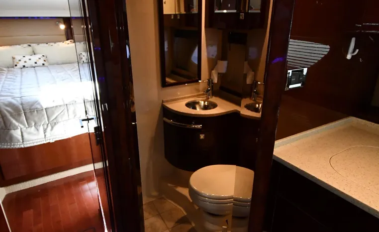 Features Twin Cummins QSB 380 HO P 380-hp Diesel Engine's w/Zues Pod's (w/Skyhook / Joy-Stick Piloting) and 1034 original hours. Notable features include but are not limited to the following: Air-Conditioning & Heat (3-Units - Including Cockpit AC/Heat), Head (Vacuflush) w/Vanity/Sink/Stall-Shower, Central Vacuum, Onan 11.5kw Generator (885-hrs), Windlass Anchor w/Forward Pedal-Controls (Note Anchor Locker Freshwater Washdown), Raymarine E120 Color MFD w/Radar/GPS/Chartplotter - Mercury Precision-Pilot w/Sky-Hook / Joy-Stick Piloting, Sony Premium Sound System, Cockpit Wet Bar w/Sink/Refrigerator/Electric BBQ-Grill, Hardtop w/Electric Sun-Roof, Plasteak Cockpit / Swim-Platform Decking, and MUCH more!