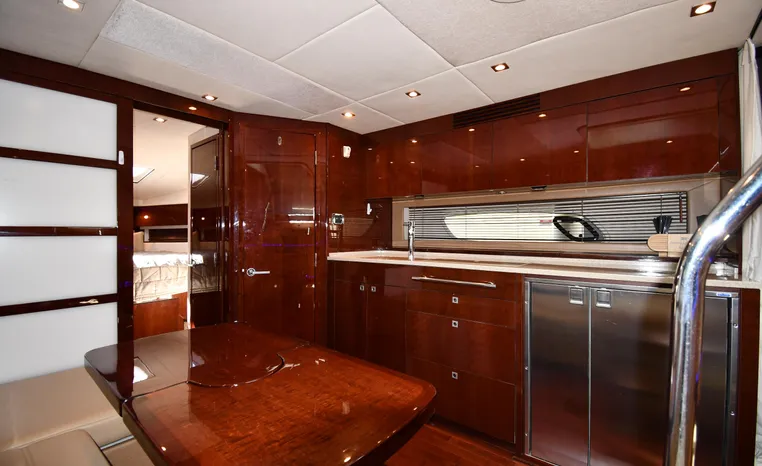 Features Twin Cummins QSB 380 HO P 380-hp Diesel Engine's w/Zues Pod's (w/Skyhook / Joy-Stick Piloting) and 1034 original hours. Notable features include but are not limited to the following: Air-Conditioning & Heat (3-Units - Including Cockpit AC/Heat), Head (Vacuflush) w/Vanity/Sink/Stall-Shower, Central Vacuum, Onan 11.5kw Generator (885-hrs), Windlass Anchor w/Forward Pedal-Controls (Note Anchor Locker Freshwater Washdown), Raymarine E120 Color MFD w/Radar/GPS/Chartplotter - Mercury Precision-Pilot w/Sky-Hook / Joy-Stick Piloting, Sony Premium Sound System, Cockpit Wet Bar w/Sink/Refrigerator/Electric BBQ-Grill, Hardtop w/Electric Sun-Roof, Plasteak Cockpit / Swim-Platform Decking, and MUCH more!