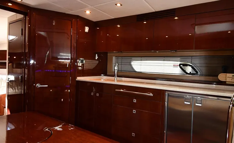 Features Twin Cummins QSB 380 HO P 380-hp Diesel Engine's w/Zues Pod's (w/Skyhook / Joy-Stick Piloting) and 1034 original hours. Notable features include but are not limited to the following: Air-Conditioning & Heat (3-Units - Including Cockpit AC/Heat), Head (Vacuflush) w/Vanity/Sink/Stall-Shower, Central Vacuum, Onan 11.5kw Generator (885-hrs), Windlass Anchor w/Forward Pedal-Controls (Note Anchor Locker Freshwater Washdown), Raymarine E120 Color MFD w/Radar/GPS/Chartplotter - Mercury Precision-Pilot w/Sky-Hook / Joy-Stick Piloting, Sony Premium Sound System, Cockpit Wet Bar w/Sink/Refrigerator/Electric BBQ-Grill, Hardtop w/Electric Sun-Roof, Plasteak Cockpit / Swim-Platform Decking, and MUCH more!
