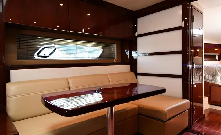 Features Twin Cummins QSB 380 HO P 380-hp Diesel Engine's w/Zues Pod's (w/Skyhook / Joy-Stick Piloting) and 1034 original hours. Notable features include but are not limited to the following: Air-Conditioning & Heat (3-Units - Including Cockpit AC/Heat), Head (Vacuflush) w/Vanity/Sink/Stall-Shower, Central Vacuum, Onan 11.5kw Generator (885-hrs), Windlass Anchor w/Forward Pedal-Controls (Note Anchor Locker Freshwater Washdown), Raymarine E120 Color MFD w/Radar/GPS/Chartplotter - Mercury Precision-Pilot w/Sky-Hook / Joy-Stick Piloting, Sony Premium Sound System, Cockpit Wet Bar w/Sink/Refrigerator/Electric BBQ-Grill, Hardtop w/Electric Sun-Roof, Plasteak Cockpit / Swim-Platform Decking, and MUCH more!