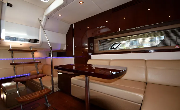 Features Twin Cummins QSB 380 HO P 380-hp Diesel Engine's w/Zues Pod's (w/Skyhook / Joy-Stick Piloting) and 1034 original hours. Notable features include but are not limited to the following: Air-Conditioning & Heat (3-Units - Including Cockpit AC/Heat), Head (Vacuflush) w/Vanity/Sink/Stall-Shower, Central Vacuum, Onan 11.5kw Generator (885-hrs), Windlass Anchor w/Forward Pedal-Controls (Note Anchor Locker Freshwater Washdown), Raymarine E120 Color MFD w/Radar/GPS/Chartplotter - Mercury Precision-Pilot w/Sky-Hook / Joy-Stick Piloting, Sony Premium Sound System, Cockpit Wet Bar w/Sink/Refrigerator/Electric BBQ-Grill, Hardtop w/Electric Sun-Roof, Plasteak Cockpit / Swim-Platform Decking, and MUCH more!