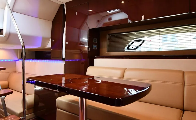 Features Twin Cummins QSB 380 HO P 380-hp Diesel Engine's w/Zues Pod's (w/Skyhook / Joy-Stick Piloting) and 1034 original hours. Notable features include but are not limited to the following: Air-Conditioning & Heat (3-Units - Including Cockpit AC/Heat), Head (Vacuflush) w/Vanity/Sink/Stall-Shower, Central Vacuum, Onan 11.5kw Generator (885-hrs), Windlass Anchor w/Forward Pedal-Controls (Note Anchor Locker Freshwater Washdown), Raymarine E120 Color MFD w/Radar/GPS/Chartplotter - Mercury Precision-Pilot w/Sky-Hook / Joy-Stick Piloting, Sony Premium Sound System, Cockpit Wet Bar w/Sink/Refrigerator/Electric BBQ-Grill, Hardtop w/Electric Sun-Roof, Plasteak Cockpit / Swim-Platform Decking, and MUCH more!
