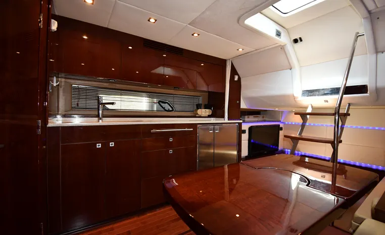 Features Twin Cummins QSB 380 HO P 380-hp Diesel Engine's w/Zues Pod's (w/Skyhook / Joy-Stick Piloting) and 1034 original hours. Notable features include but are not limited to the following: Air-Conditioning & Heat (3-Units - Including Cockpit AC/Heat), Head (Vacuflush) w/Vanity/Sink/Stall-Shower, Central Vacuum, Onan 11.5kw Generator (885-hrs), Windlass Anchor w/Forward Pedal-Controls (Note Anchor Locker Freshwater Washdown), Raymarine E120 Color MFD w/Radar/GPS/Chartplotter - Mercury Precision-Pilot w/Sky-Hook / Joy-Stick Piloting, Sony Premium Sound System, Cockpit Wet Bar w/Sink/Refrigerator/Electric BBQ-Grill, Hardtop w/Electric Sun-Roof, Plasteak Cockpit / Swim-Platform Decking, and MUCH more!
