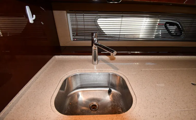 Features Twin Cummins QSB 380 HO P 380-hp Diesel Engine's w/Zues Pod's (w/Skyhook / Joy-Stick Piloting) and 1034 original hours. Notable features include but are not limited to the following: Air-Conditioning & Heat (3-Units - Including Cockpit AC/Heat), Head (Vacuflush) w/Vanity/Sink/Stall-Shower, Central Vacuum, Onan 11.5kw Generator (885-hrs), Windlass Anchor w/Forward Pedal-Controls (Note Anchor Locker Freshwater Washdown), Raymarine E120 Color MFD w/Radar/GPS/Chartplotter - Mercury Precision-Pilot w/Sky-Hook / Joy-Stick Piloting, Sony Premium Sound System, Cockpit Wet Bar w/Sink/Refrigerator/Electric BBQ-Grill, Hardtop w/Electric Sun-Roof, Plasteak Cockpit / Swim-Platform Decking, and MUCH more!