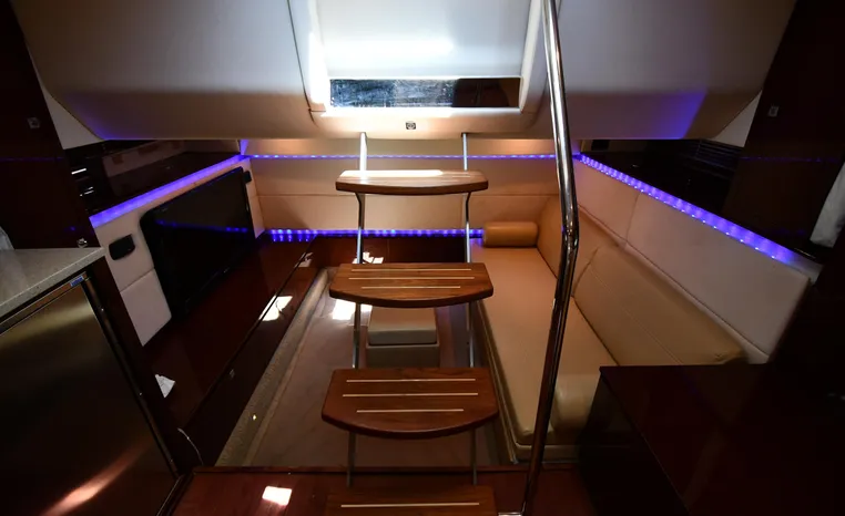 Features Twin Cummins QSB 380 HO P 380-hp Diesel Engine's w/Zues Pod's (w/Skyhook / Joy-Stick Piloting) and 1034 original hours. Notable features include but are not limited to the following: Air-Conditioning & Heat (3-Units - Including Cockpit AC/Heat), Head (Vacuflush) w/Vanity/Sink/Stall-Shower, Central Vacuum, Onan 11.5kw Generator (885-hrs), Windlass Anchor w/Forward Pedal-Controls (Note Anchor Locker Freshwater Washdown), Raymarine E120 Color MFD w/Radar/GPS/Chartplotter - Mercury Precision-Pilot w/Sky-Hook / Joy-Stick Piloting, Sony Premium Sound System, Cockpit Wet Bar w/Sink/Refrigerator/Electric BBQ-Grill, Hardtop w/Electric Sun-Roof, Plasteak Cockpit / Swim-Platform Decking, and MUCH more!