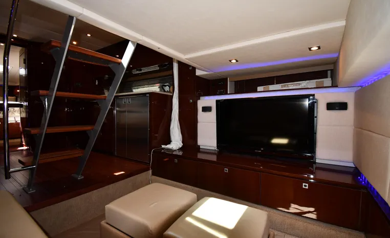 Features Twin Cummins QSB 380 HO P 380-hp Diesel Engine's w/Zues Pod's (w/Skyhook / Joy-Stick Piloting) and 1034 original hours. Notable features include but are not limited to the following: Air-Conditioning & Heat (3-Units - Including Cockpit AC/Heat), Head (Vacuflush) w/Vanity/Sink/Stall-Shower, Central Vacuum, Onan 11.5kw Generator (885-hrs), Windlass Anchor w/Forward Pedal-Controls (Note Anchor Locker Freshwater Washdown), Raymarine E120 Color MFD w/Radar/GPS/Chartplotter - Mercury Precision-Pilot w/Sky-Hook / Joy-Stick Piloting, Sony Premium Sound System, Cockpit Wet Bar w/Sink/Refrigerator/Electric BBQ-Grill, Hardtop w/Electric Sun-Roof, Plasteak Cockpit / Swim-Platform Decking, and MUCH more!