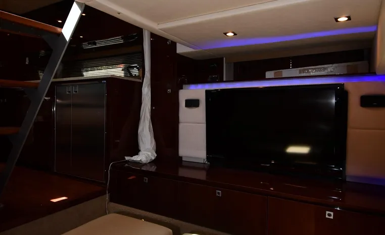 Features Twin Cummins QSB 380 HO P 380-hp Diesel Engine's w/Zues Pod's (w/Skyhook / Joy-Stick Piloting) and 1034 original hours. Notable features include but are not limited to the following: Air-Conditioning & Heat (3-Units - Including Cockpit AC/Heat), Head (Vacuflush) w/Vanity/Sink/Stall-Shower, Central Vacuum, Onan 11.5kw Generator (885-hrs), Windlass Anchor w/Forward Pedal-Controls (Note Anchor Locker Freshwater Washdown), Raymarine E120 Color MFD w/Radar/GPS/Chartplotter - Mercury Precision-Pilot w/Sky-Hook / Joy-Stick Piloting, Sony Premium Sound System, Cockpit Wet Bar w/Sink/Refrigerator/Electric BBQ-Grill, Hardtop w/Electric Sun-Roof, Plasteak Cockpit / Swim-Platform Decking, and MUCH more!