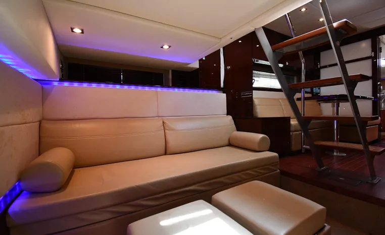 Features Twin Cummins QSB 380 HO P 380-hp Diesel Engine's w/Zues Pod's (w/Skyhook / Joy-Stick Piloting) and 1034 original hours. Notable features include but are not limited to the following: Air-Conditioning & Heat (3-Units - Including Cockpit AC/Heat), Head (Vacuflush) w/Vanity/Sink/Stall-Shower, Central Vacuum, Onan 11.5kw Generator (885-hrs), Windlass Anchor w/Forward Pedal-Controls (Note Anchor Locker Freshwater Washdown), Raymarine E120 Color MFD w/Radar/GPS/Chartplotter - Mercury Precision-Pilot w/Sky-Hook / Joy-Stick Piloting, Sony Premium Sound System, Cockpit Wet Bar w/Sink/Refrigerator/Electric BBQ-Grill, Hardtop w/Electric Sun-Roof, Plasteak Cockpit / Swim-Platform Decking, and MUCH more!