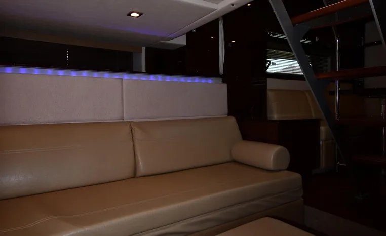 Features Twin Cummins QSB 380 HO P 380-hp Diesel Engine's w/Zues Pod's (w/Skyhook / Joy-Stick Piloting) and 1034 original hours. Notable features include but are not limited to the following: Air-Conditioning & Heat (3-Units - Including Cockpit AC/Heat), Head (Vacuflush) w/Vanity/Sink/Stall-Shower, Central Vacuum, Onan 11.5kw Generator (885-hrs), Windlass Anchor w/Forward Pedal-Controls (Note Anchor Locker Freshwater Washdown), Raymarine E120 Color MFD w/Radar/GPS/Chartplotter - Mercury Precision-Pilot w/Sky-Hook / Joy-Stick Piloting, Sony Premium Sound System, Cockpit Wet Bar w/Sink/Refrigerator/Electric BBQ-Grill, Hardtop w/Electric Sun-Roof, Plasteak Cockpit / Swim-Platform Decking, and MUCH more!