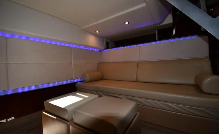 Features Twin Cummins QSB 380 HO P 380-hp Diesel Engine's w/Zues Pod's (w/Skyhook / Joy-Stick Piloting) and 1034 original hours. Notable features include but are not limited to the following: Air-Conditioning & Heat (3-Units - Including Cockpit AC/Heat), Head (Vacuflush) w/Vanity/Sink/Stall-Shower, Central Vacuum, Onan 11.5kw Generator (885-hrs), Windlass Anchor w/Forward Pedal-Controls (Note Anchor Locker Freshwater Washdown), Raymarine E120 Color MFD w/Radar/GPS/Chartplotter - Mercury Precision-Pilot w/Sky-Hook / Joy-Stick Piloting, Sony Premium Sound System, Cockpit Wet Bar w/Sink/Refrigerator/Electric BBQ-Grill, Hardtop w/Electric Sun-Roof, Plasteak Cockpit / Swim-Platform Decking, and MUCH more!