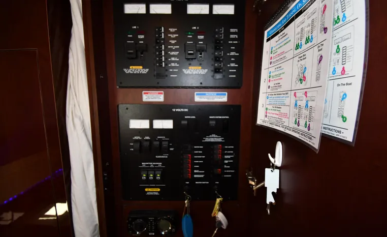 Features Twin Cummins QSB 380 HO P 380-hp Diesel Engine's w/Zues Pod's (w/Skyhook / Joy-Stick Piloting) and 1034 original hours. Notable features include but are not limited to the following: Air-Conditioning & Heat (3-Units - Including Cockpit AC/Heat), Head (Vacuflush) w/Vanity/Sink/Stall-Shower, Central Vacuum, Onan 11.5kw Generator (885-hrs), Windlass Anchor w/Forward Pedal-Controls (Note Anchor Locker Freshwater Washdown), Raymarine E120 Color MFD w/Radar/GPS/Chartplotter - Mercury Precision-Pilot w/Sky-Hook / Joy-Stick Piloting, Sony Premium Sound System, Cockpit Wet Bar w/Sink/Refrigerator/Electric BBQ-Grill, Hardtop w/Electric Sun-Roof, Plasteak Cockpit / Swim-Platform Decking, and MUCH more!