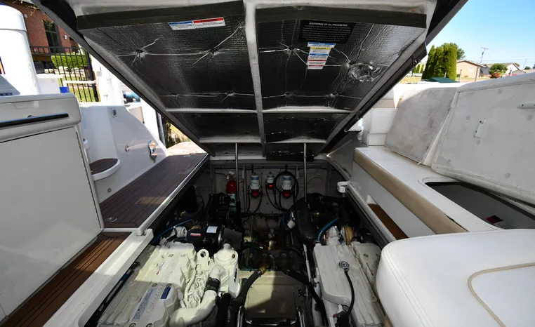 Features Twin Cummins QSB 380 HO P 380-hp Diesel Engine's w/Zues Pod's (w/Skyhook / Joy-Stick Piloting) and 1034 original hours. Notable features include but are not limited to the following: Air-Conditioning & Heat (3-Units - Including Cockpit AC/Heat), Head (Vacuflush) w/Vanity/Sink/Stall-Shower, Central Vacuum, Onan 11.5kw Generator (885-hrs), Windlass Anchor w/Forward Pedal-Controls (Note Anchor Locker Freshwater Washdown), Raymarine E120 Color MFD w/Radar/GPS/Chartplotter - Mercury Precision-Pilot w/Sky-Hook / Joy-Stick Piloting, Sony Premium Sound System, Cockpit Wet Bar w/Sink/Refrigerator/Electric BBQ-Grill, Hardtop w/Electric Sun-Roof, Plasteak Cockpit / Swim-Platform Decking, and MUCH more!